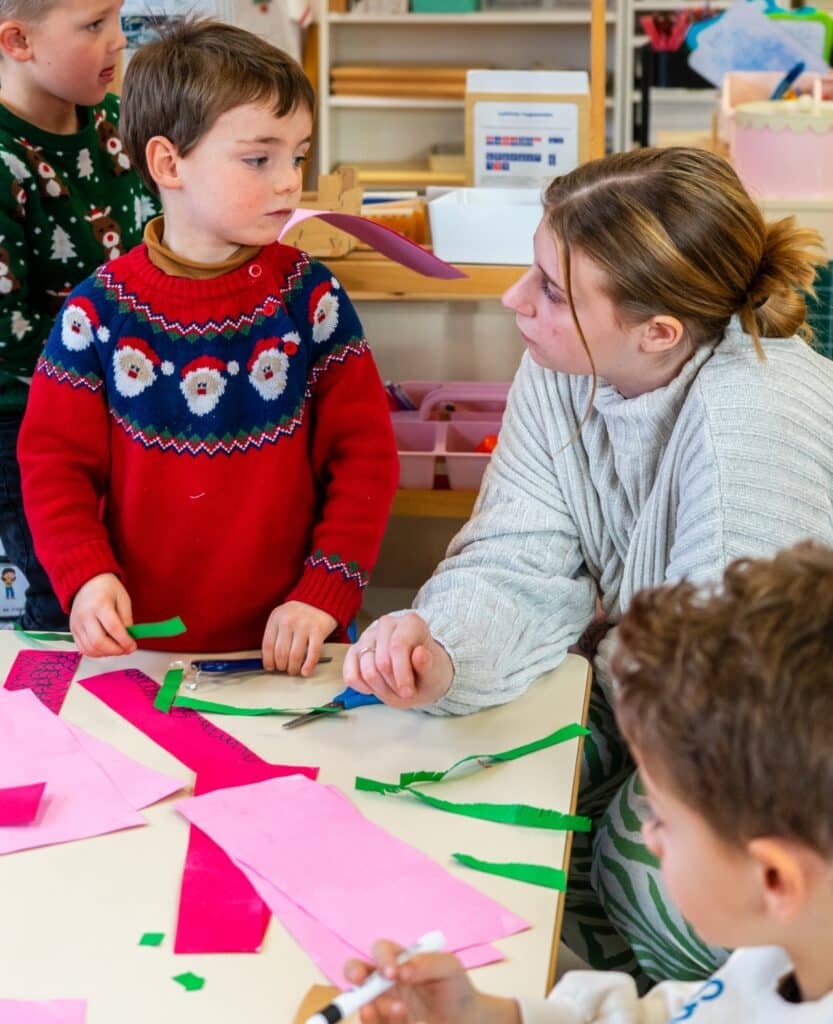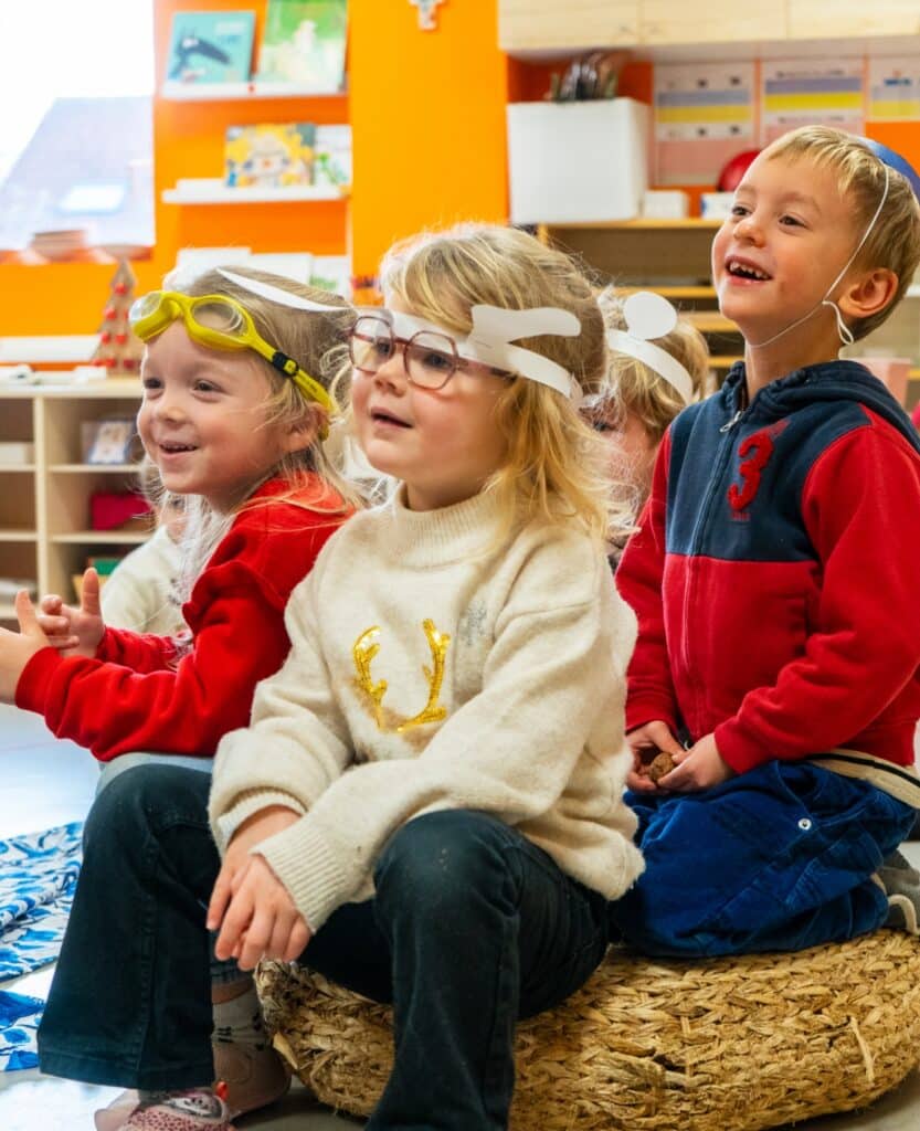 Les classes multi-âges permettent aux enfants de grandir ensemble : les plus jeunes s’inspirent des plus grands, tandis que ces derniers renforcent leurs acquis en aidant les autres. Ce fonctionnement favorise l’entraide, la coopération et le respect de chacun.
